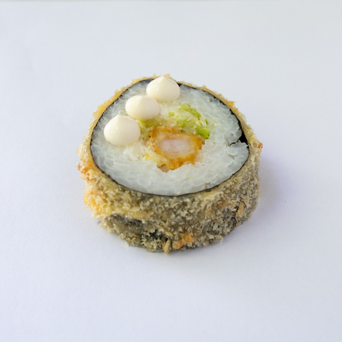 Pankó morzsában sült nagy tekercs, szarvasgombás sajtkrémmel, tempurában sült tigrisrákkal, és ropogós jégsalátával. Extra szarvasgombás majonézzel felturbózva.